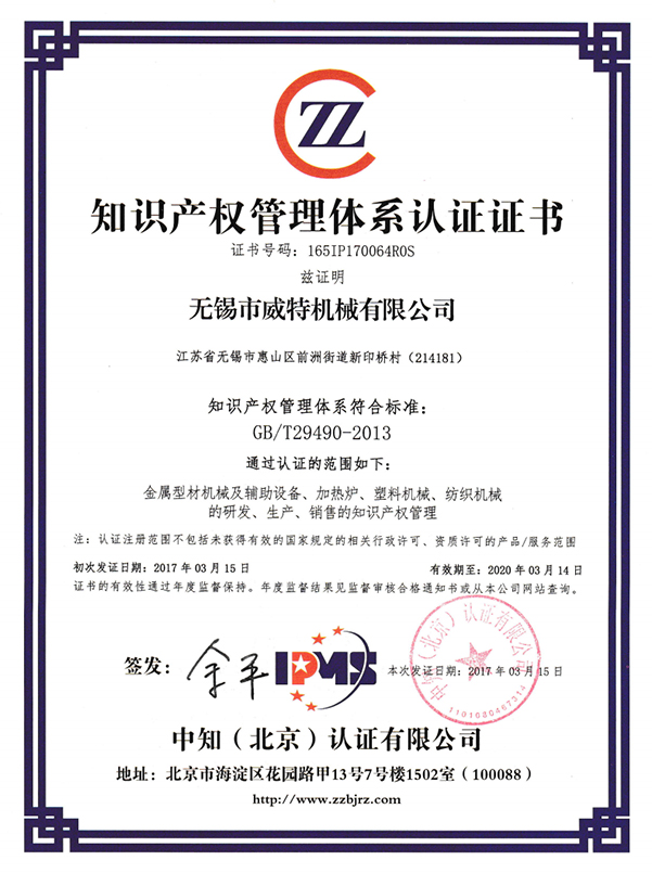 知識產權管理體系認證證書