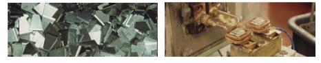 In the precious metals industry, such as the precious metals produced by France Metalor Company with our extrusion press, rivet products (single metal, double metal or trimetal materials) made of precious metal alloy, as well as welding points.